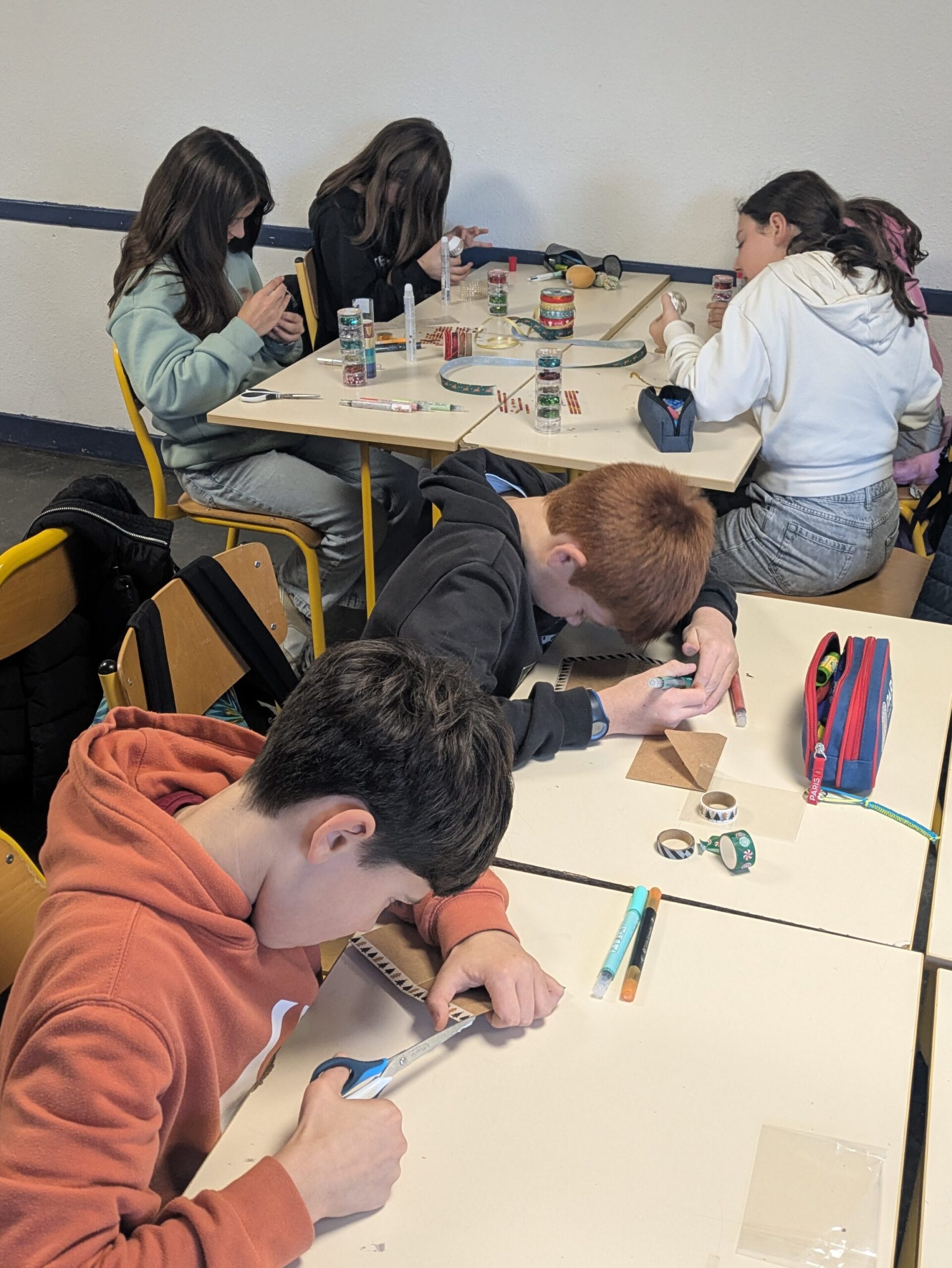 💌 L’atelier cartes de vœux : messages positifs et dessins pour partager la magie des fêtes, ils seront exposés en salle d’étude.