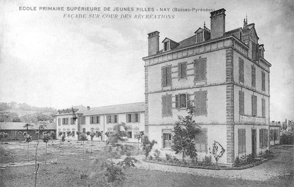 Lors de la séance du 21 septembre 1904, le maire, Paul Rey, propose, comme alternative à la perte de l’enseignement congréganiste pour les filles, son projet « de création d’une école primaire supérieure de filles à l’immeuble Péez Cacaré ». C’est cette fameuse école qui sera à l’origine du lycée actuel de Nay.